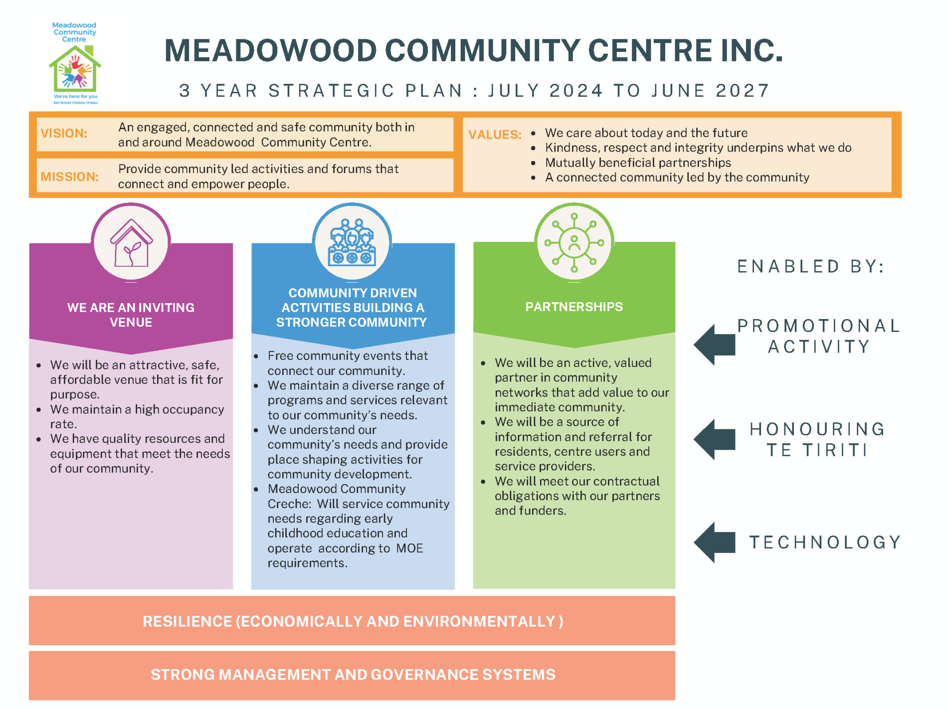 Meadowood residents have always been strong advocates for their community, this is why in 1998 Meadowood Centre Incorporated was registered as an Incorporated Society in 1991 and as a charitable entity under the Charities Act 2005 on 12 March 2008.